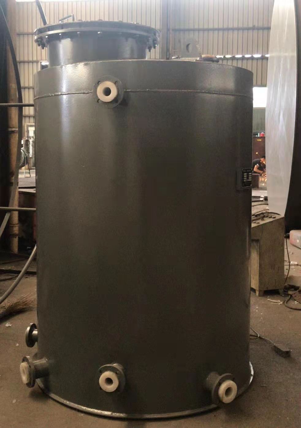 防腐緩沖罐以碳鋼罐為基本,內襯聚乙烯,它既有鋼罐的機械性能,又有塑料儲罐的耐腐蝕,緩結垢,不易生長微生物的特點,是儲存酸堿液體的理想容器。為了配合鋼襯塑儲罐使用的工況,鋼襯塑儲罐底板下表面采用的涂料需要選擇耐磨性能好的防腐涂料。國內常用于底板下表面的涂料有硅酸鹽涂料、液態環氧涂料、聚氨酯涂料等。聚氨酯涂料的硬度較低,一般不選用。